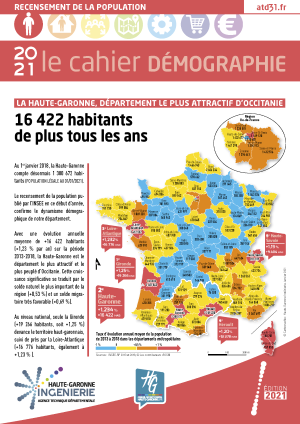 Ce 4 pages détaille, à partir du dernier recensement de la population de l'Insee, l'évolution de la population de la Haute-Garonne par rapport aux autres départements français, celle des établissements publics de coopération intercommunale (EPCI) et des pôles d'équilibre territorial et rural (PETR), ainsi que des cantons haut-garonnais, pour la période 2013 à 2018.